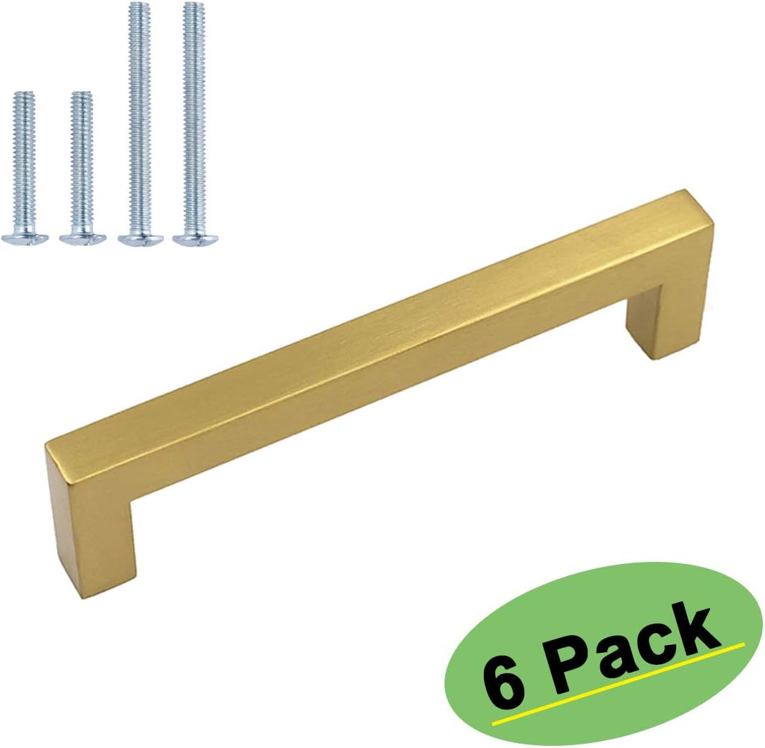 Homdiy Brushed Gold Cabinet Pulls Gold Hardware For Cabinets Hdj12gd Drawer Pulls Handles For Dresser Drawers 5in 128mm Hole Centers Furniture Hardware 6 Pack Amazon Com
